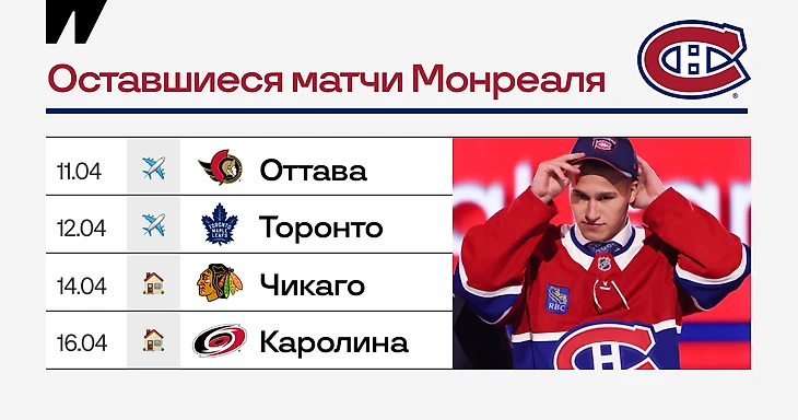 Сейчас «Монреаль» (87 очков, 78 матчей) идет в зоне уайлд-кард на Востоке. Вопрос с выходом в плей-офф почти решен: отрыв от преследователей – 8 очков. У «Канадиенс» в регулярке осталось всего четыре игры – в одной из них и может дебютировать Демидов.