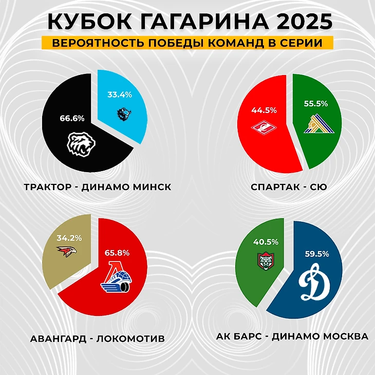 Шансы команд на победу в Кубке Гагарина-2025 и прогнозы на следующий раунд: мнение букмекеров и экспертов