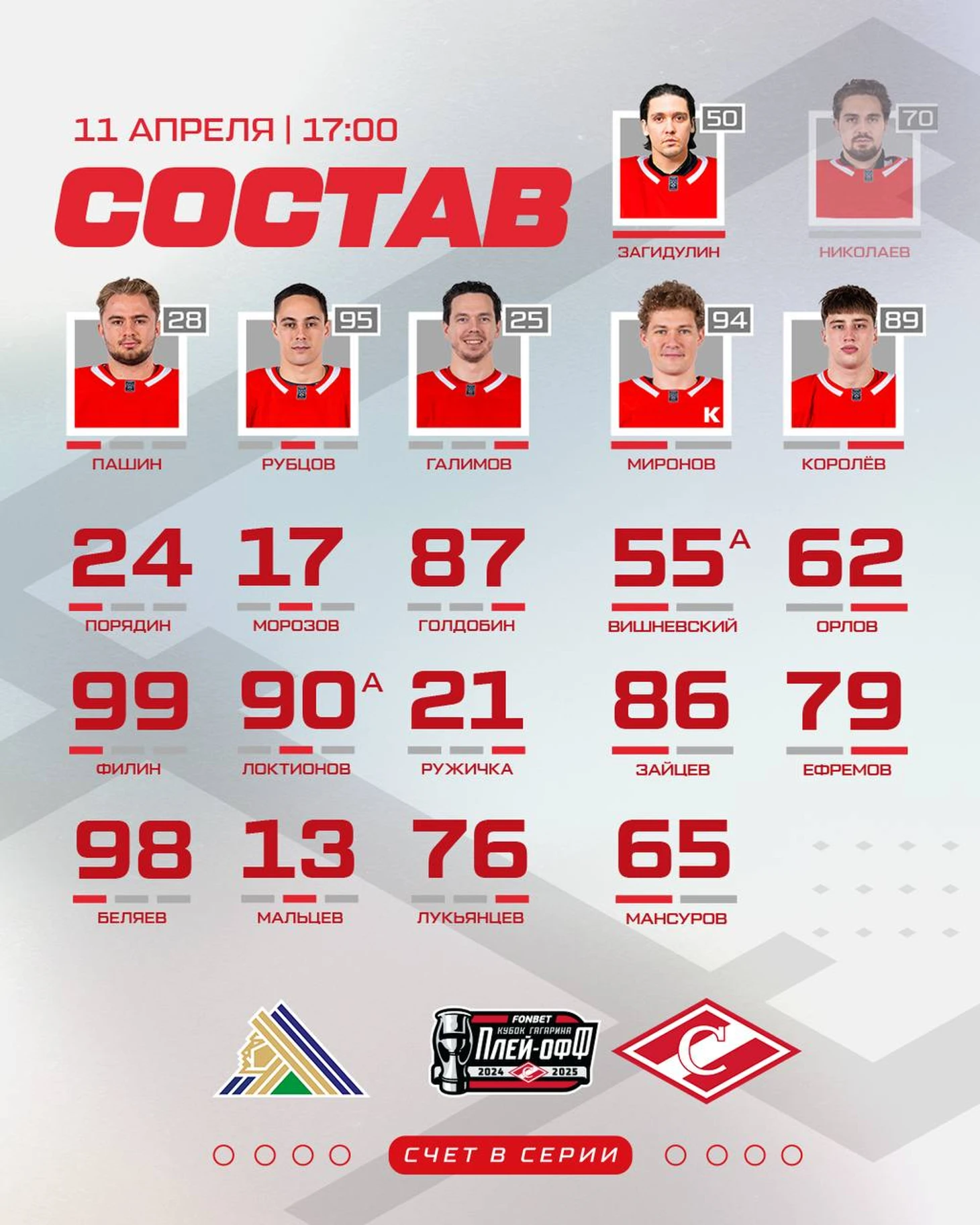 Состав спартаковцев на первую игру серии с «Салават Юлаев»