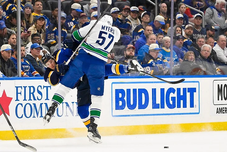 Следующая игра была одной из ключевых. Битва за четыре очка в Сент-Луисе оправдала ожидания болельщиков и специалистов. Два периода напряженного хоккея в борьбе на каждом участке льда с единственной шайбой «Блюз» и фантастические качели в третьем отрезке. «Кэнакс» перевернули игру голами Кифера Шервуда и Босера, но «музыканты» ответили своим дуплетом в течение 24 секунд. Счет 3:2 держался до самого конца, и когда казалось, что подопечные Рика Токкета поедут в Нью-Йорк несолоно хлебавши, они разыграли атаку из средней зоны: Куинн Хьюз остановил шайбу и отдал к борту на синюю линию Элиасу Петтерссону, а тот нашел подключившегося по другой стороне Босера, и Брок щелчком перевел игру в овертайм за четыре секунды до сирены! В дополнительной пятиминутке все могло закончиться как угодно, но закончилось голом Филипа Броберга в отрыве, и «Сент-Луис» снова победил.