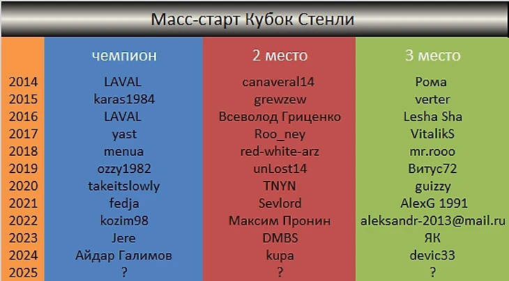 Все призёры будут навечно вписаны в Зал Славы масс-стартов.