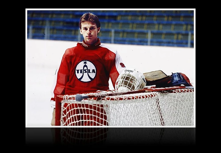 В составе Теслы Гашек становился чемпионом Чехословакии в 1987, 1989 году, 4 раза признавался лучшим вратарём Челословацкой лиги (на фото Гашек в нижнем левом углу).