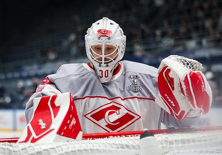 Ярослав Кузьменко – основной вратарь «Спартака». В плей-офф-2025 голкипер провел восемь матчей, по итогам которых занимает первое место в Лиге по проценту отраженных бросков (95,7%), также в его активе коэффициент надежности 1,74. Кузьменко «засушил» три игры – это лучший результат в Лиге. Вратарь признавался лучшим голкипером 1/8 и 1/4 финала Кубка Харламова.