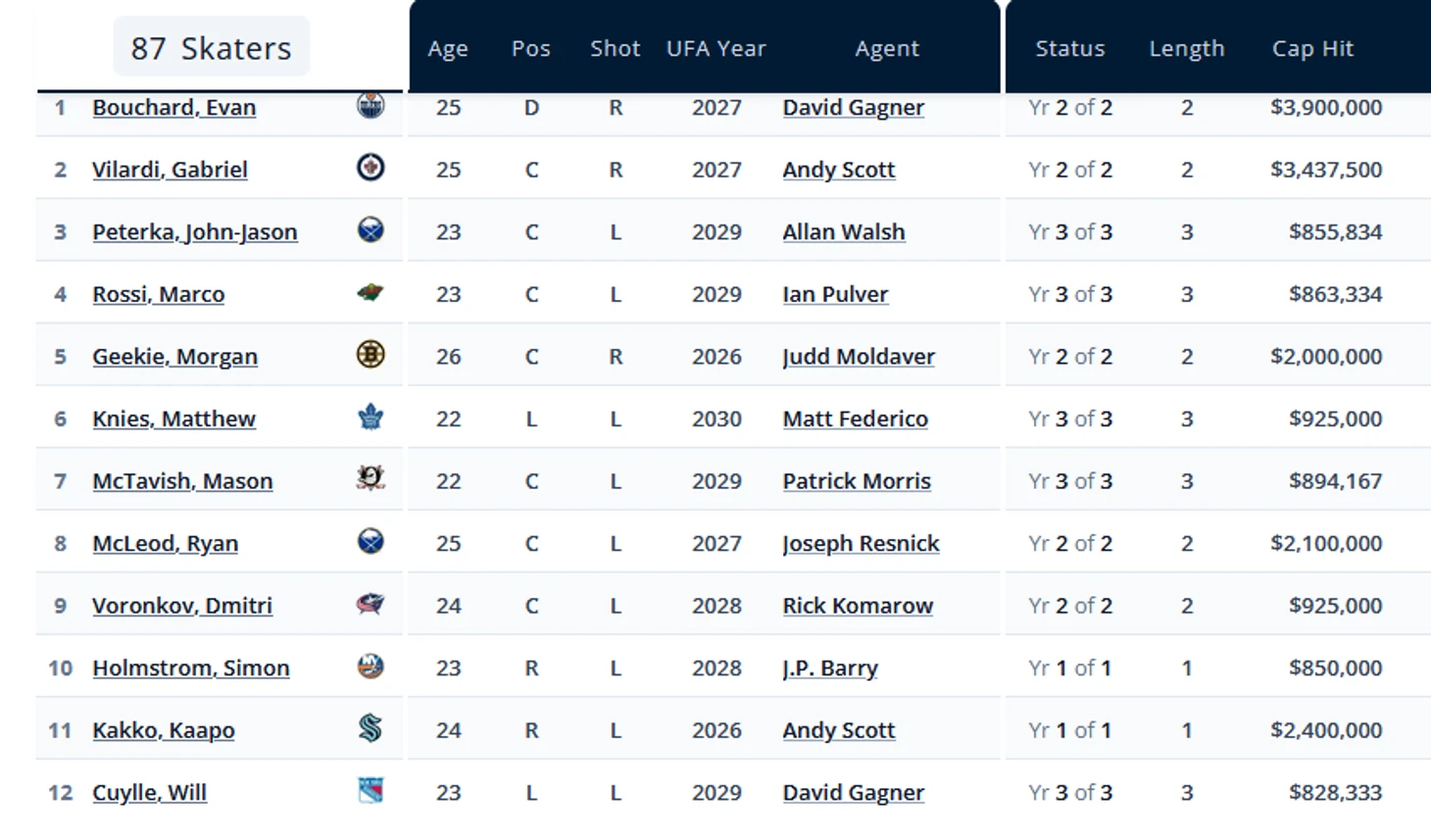 В этом межсезонье, будут неплохие варианты для получения листа предложений, или обменов: Бушар, Хьюз, Добсон, Дж. Дж. Петерка, Найз, Росси, Воронков, Мактавиш, Кулли…..