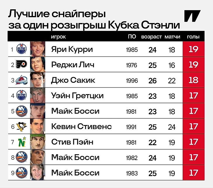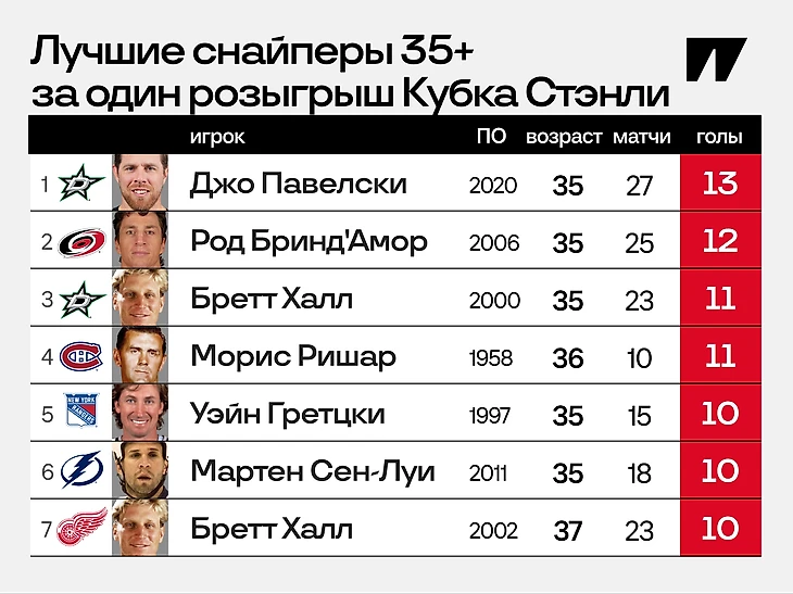 Если что, 15 шайб Овечкина в 2018-м – 17-й результат в истории Кубка Стэнли. Было бы круто как минимум повторить. Но все же нападающему 39 лет – так что сначала стоит разбить все рекорды для тех, кому 35+.