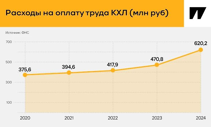 Оплата труда всех сотрудников КХЛ составила 620,2 млн рублей – здесь также планомерный рост.