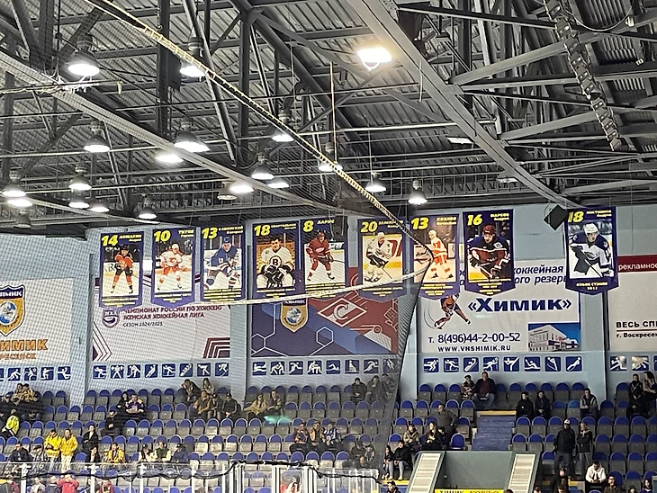 Сам стадион «Химика» — олдскульный советский хоккейный дворец. Очень напомнил мне мой родной «Кристалл». Когда гуляешь в фойе, осознаешь, что для Воскресенска хоккей — нечто большее, чем просто игра с шайбой. Множество исторических стендов с различными атрибутами: образцами кубков, экипировкой, вымпелами и т.д.