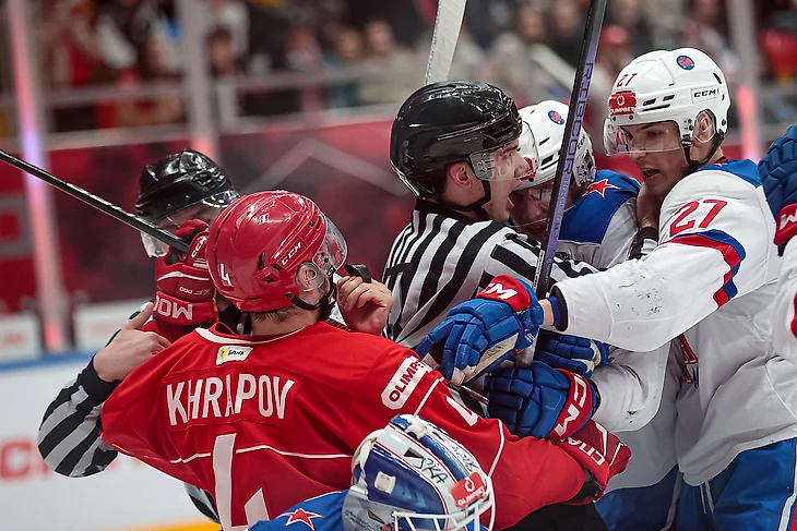 Первый матч финала Кубка Харламова прошел 12 мая. Несмотря на атакующие стили обеих команд (самые забивающие коллективы плей-офф, у каждого 200+ заброшенных шайб в регулярке), противостояние завершилось с низовым счетом 2:1. Сначала Никита Ракчеев по-боброски завез шайбу в ворота Павла Мойсевича в концовке первого периода, затем Амир Нугманов вернул равенство на экваторе встречи, а в третьей двадцатиминутке результатом потери на синей линии стала контратака «Спартака» 2 в 0 и гол Федора Храпова в меньшинстве.