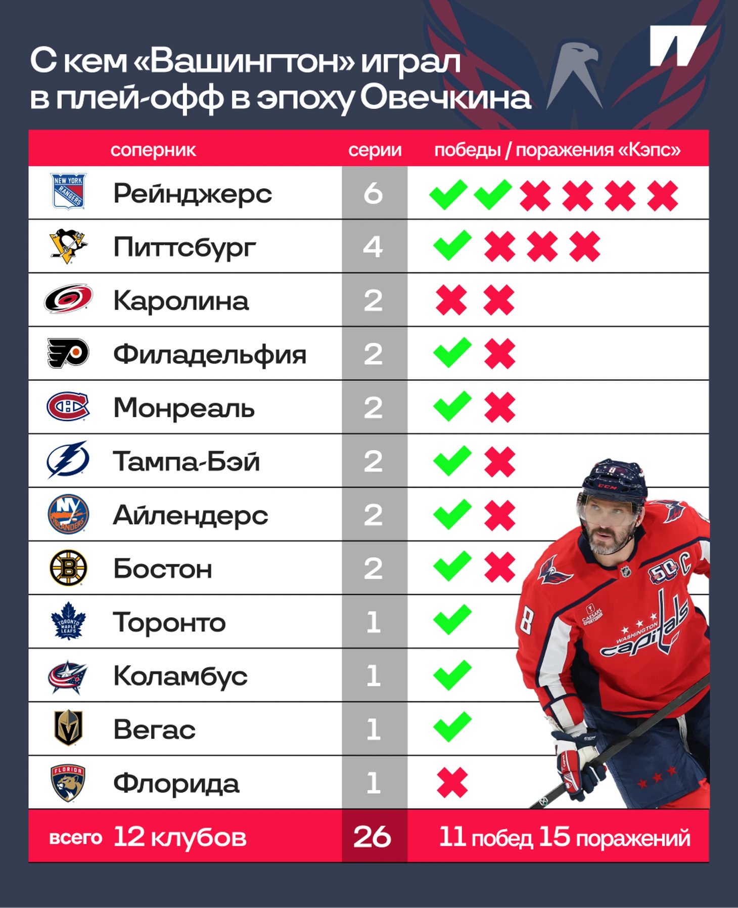 Этот шлагбаум стал особенно заметен в новую эпоху – когда Овечкин вырос в звезду НХЛ, а команда регулярно становилась лучшей в дивизионе и даже в лиге. Но пройти дальше второго раунда просто не могла – хотя казалось, что все для этого было.