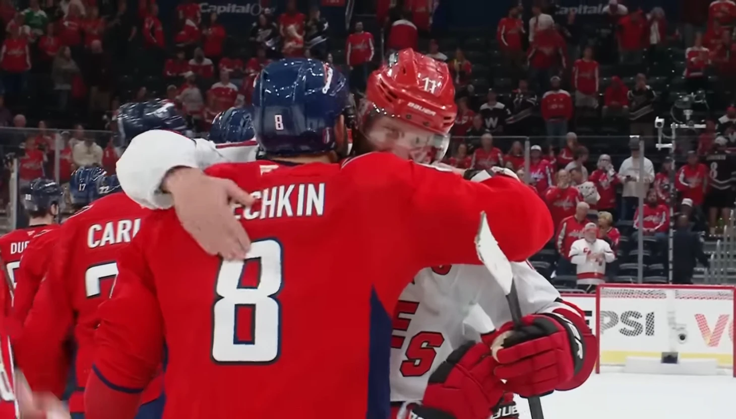 Но на традиционном рукопожатии после серии плей-офф Овечкин нашел в себе силы поздравить игроков «Каролины» – а соперники отдали дань уважения великому снайперу.