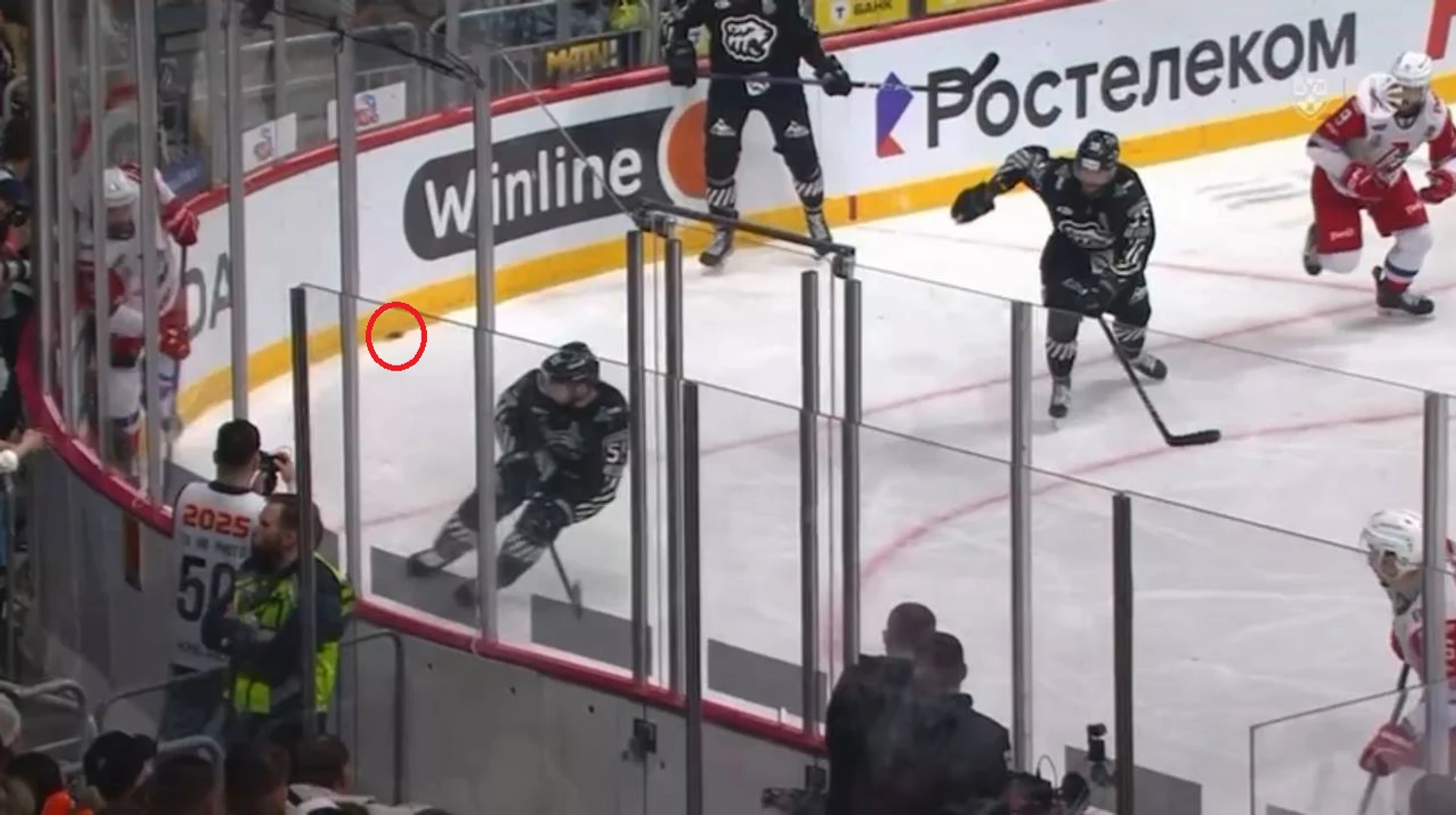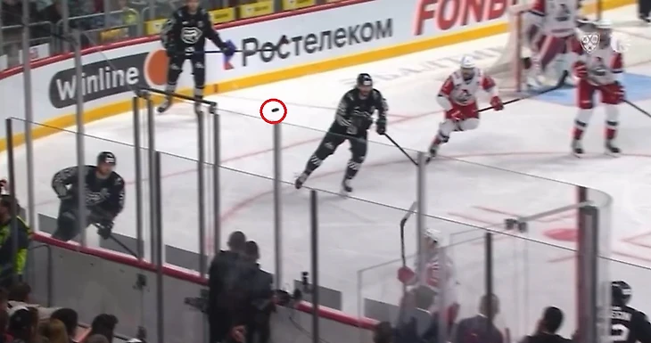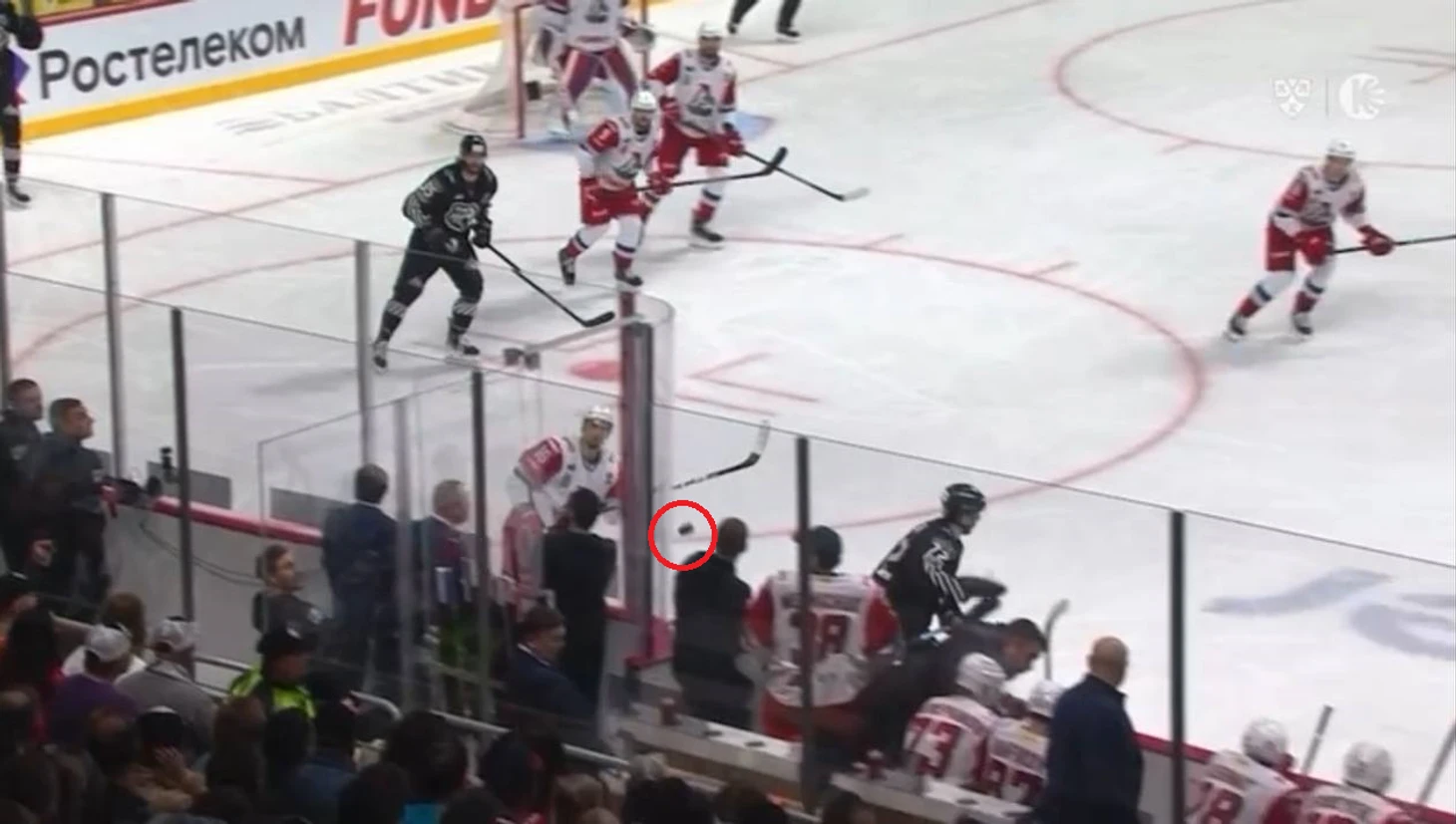 Защитник «Локомотива» Александр Елесин выбрасывал шайбу из зоны, но отправил ее прямо на собственную скамейку. Она залетела туда через заградительное стекло. При этом рикошета от стекла не было.