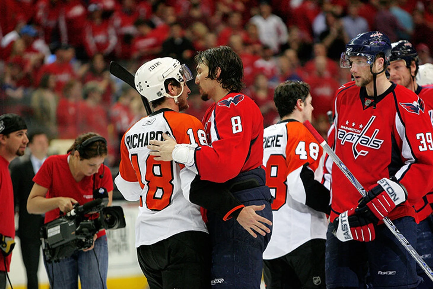 Например, судейство. Первый плей-офф Ови в НХЛ в 2008-м, седьмой матч с «Филадельфией». При счете 1:1 Патрик Торесен швырнул на Юэ защитника «Кэпс», Капанен забил – и это засчитали. Овечкин сравнял счет, но овертайме удалился Том Поти, и «Филадельфия» такой шанс не упустила. «Я тогда думал: «Боже, что они делают. Эта ошибка судьи стоила нам игры», – вспоминал Ови спустя 10 лет после матча.
