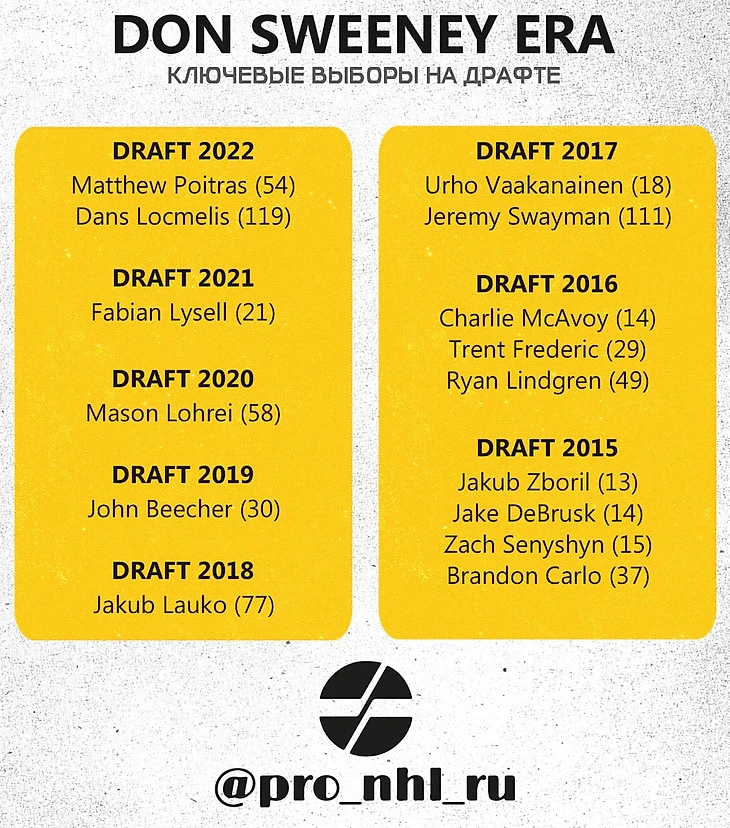 Теперь самое время взглянуть, как Дон Суини работал на драфтах. Думаю, многие согласятся с утверждением, что драфты — не самая сильная сторона этого парня.