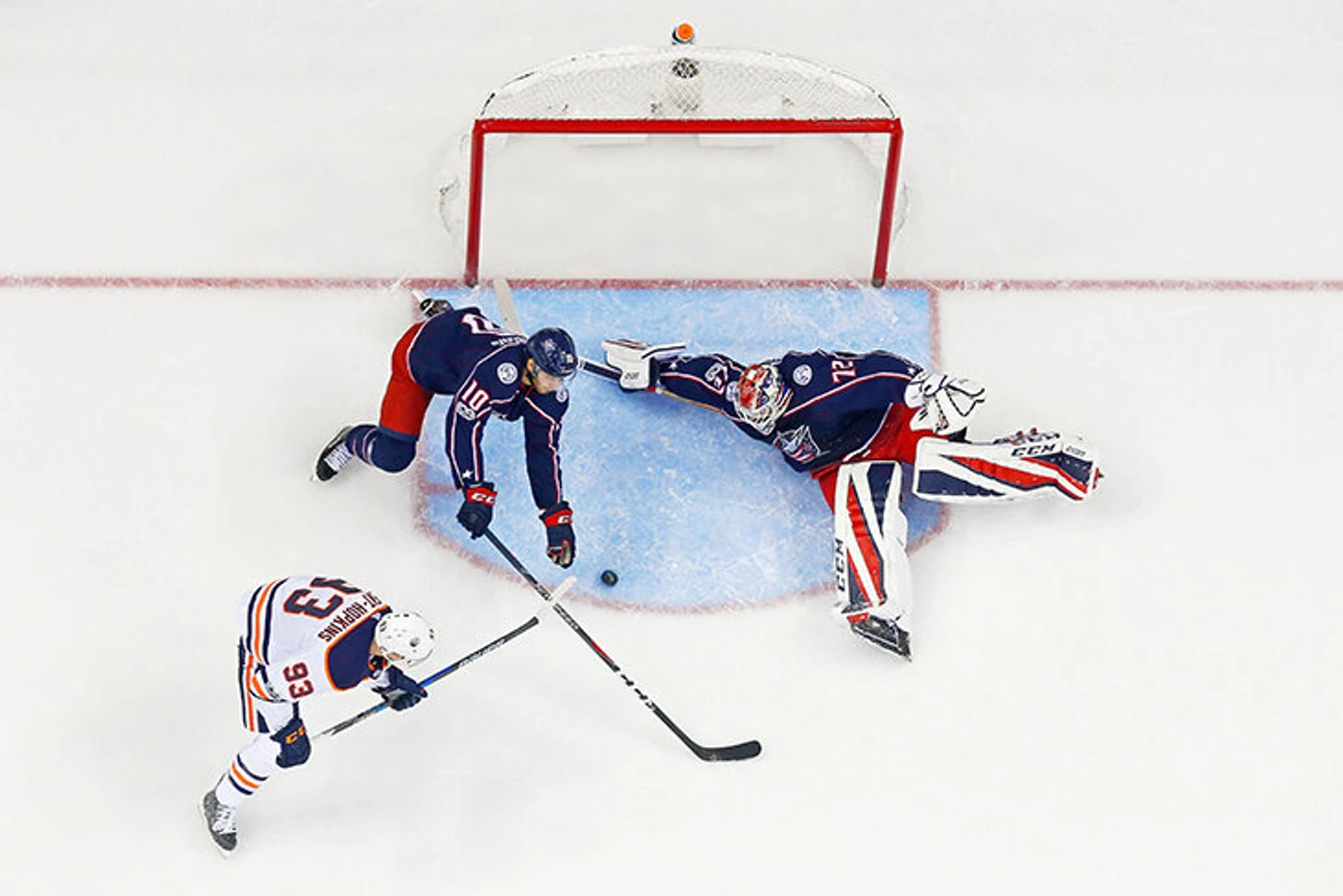 До конца основного времени 8 секунд, счет 3:3, вбрасывание у ворот Улльмарка. Райнхарт проигрывает Бержерону, Ткачак уступает в единоборстве, а Монтур и Экблад непостижимым образом позволяют Брэду Маршанду убежать один на один.