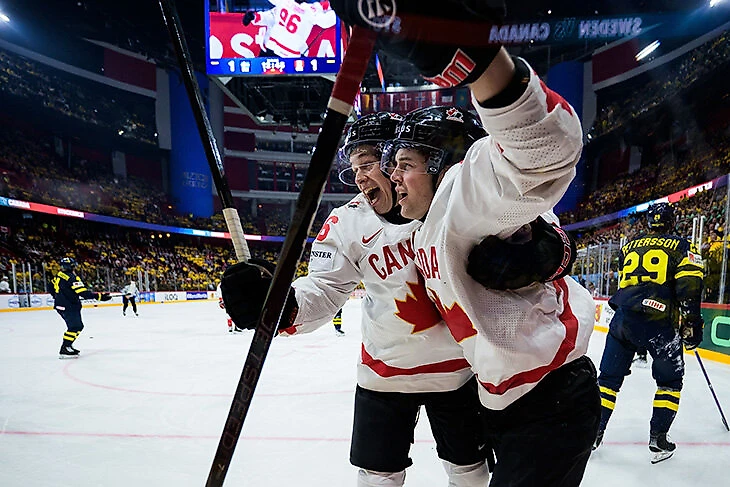 Инициативу с «Gimme! Gimme! Gimme!» подхватила и мужская сборная уже на этот чемпионат мира. ЧМ-2025 проходит в двух странах – Швеции и Дании. В групповом этапе Канада играет как раз на шведской «Авичи-арене» и празднует под песню ABBA.
