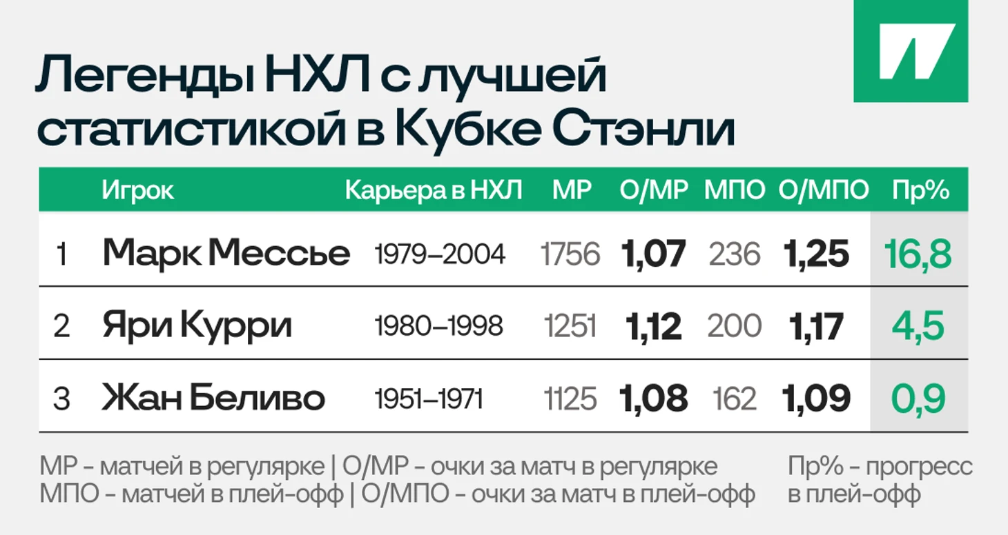 Но ситуация с ним похожа на ту, что у Каменского: в последние 7 лет карьеры команды Мессье не участвовали в Кубке Стэнли. Его места в топе это не отменяет: за исключением этих регулярок, у Марка +2,5% к результативности в плей-офф.