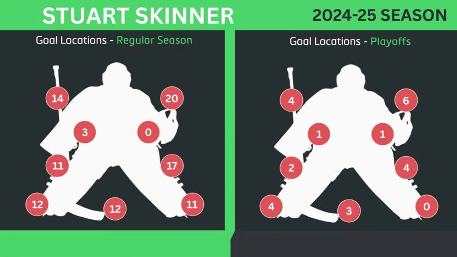 Сергей Бобровский («Флорида Пантерз») и Стюарт Скиннер («Эдмонтон Ойлерз») вновь сойдутся в решающей серии, повторив прошлогодний финал. Разбираем их сильные и слабые стороны на основе анализа 100 пропущенных голов в регулярке и всех шайб в плей-офф.