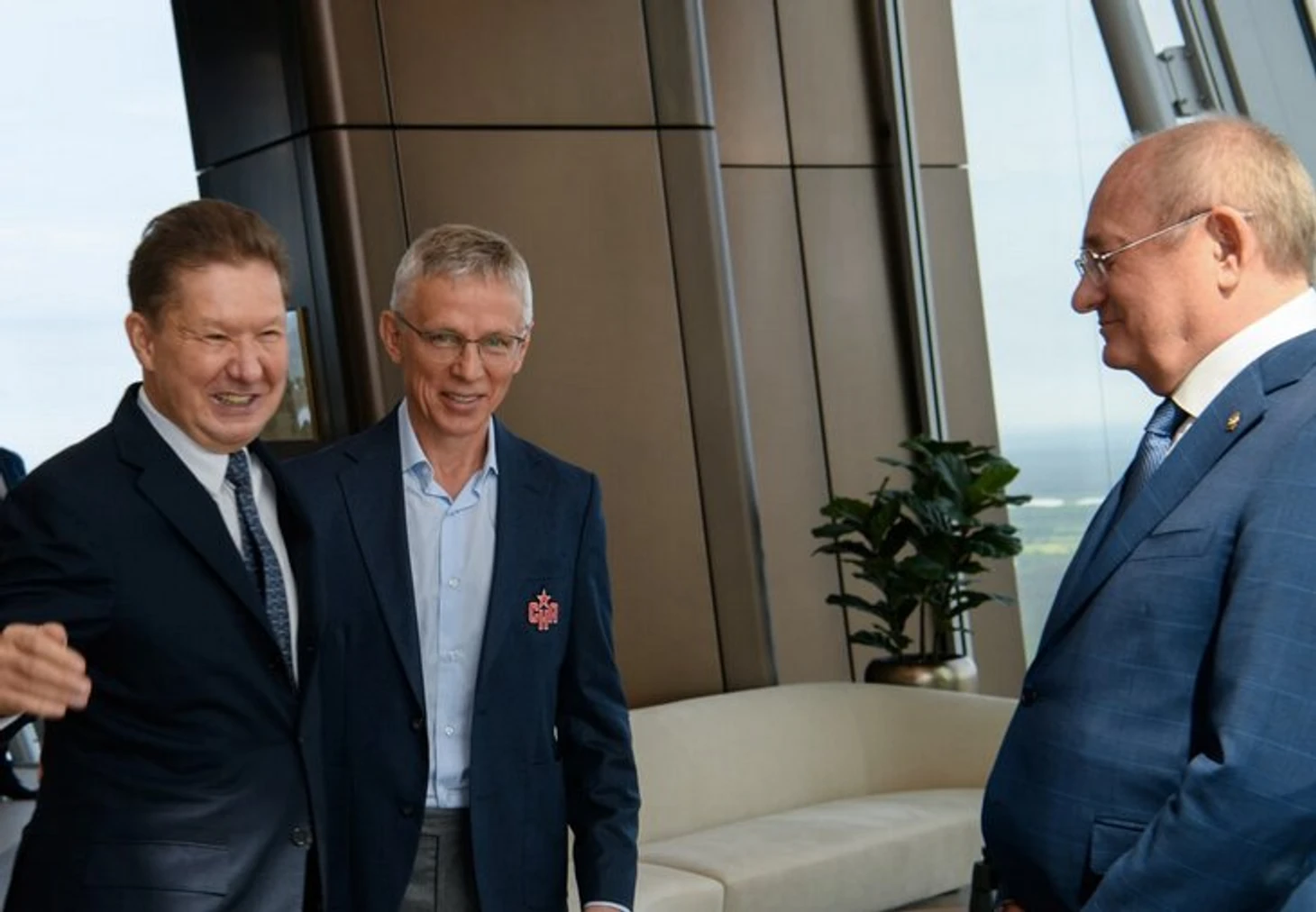 Босс «Газпрома» Алексей Миллер обнимает Ларионова и предвкушает ясное будущее. Тот самый Алексей Миллер, которого Ротенберг 57 раз поблагодарил в телеграм-канале. Тот самый Алексей Миллер, который рядом с Ротенбергом так никогда не улыбался.