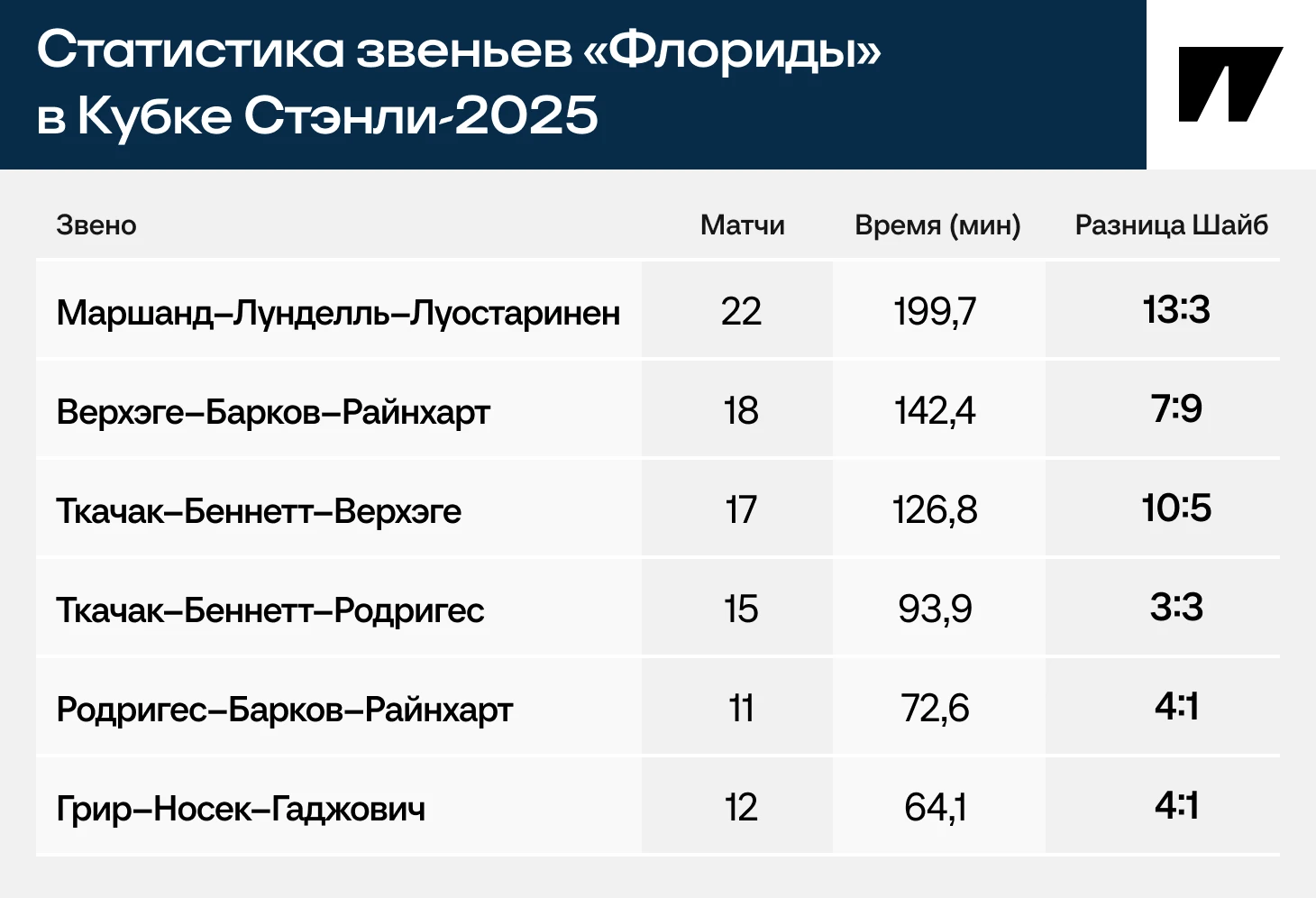 При этом сочетание периодически выпускают против лидеров соперников – все нападающие здесь хороши в обороне. И одним из важных факторов победы в серии с «Торонто» стало решение тренеров «Флориды» ставить третье звено как раз против звеньев Мэттьюса и Тавареса.