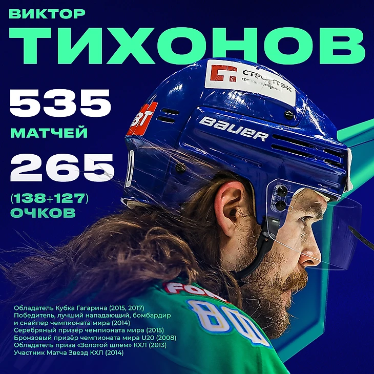 Через год на чемпионате мира в Чехии Тихонов выиграл серебро, а на клубном уровне завоевал еще две медали с «Ак Барсом», куда перешел в ноябре 2019 года. На старте того сезона Виктор редко попадал в состав СКА, из-за чего попросил обмена и оказался в Казани. В 2020-м, в незавершенном чемпионате, «Ак Барс» стал вторым. Через год – третьим.