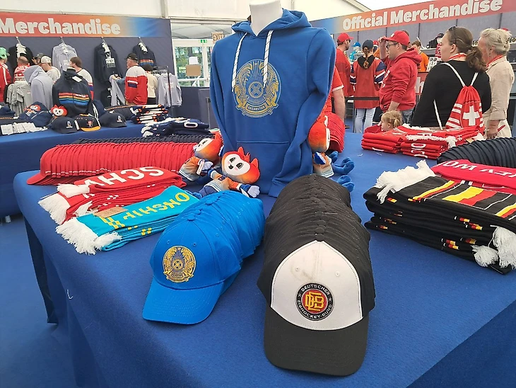 Один из самых ходовых товаров в фан-шопе – джерси команд-участниц чемпионата. В Хернинге можно было приобрести джерси сборных, которые выступают в группе «В», а в Стокгольме – группы «А». По сравнению с прошлым чемпионатом мира цена на джерси возросла: год назад в Чехии джерси сборных оценивалась в 48 000 тенге, а в Хернинге и Стокгольме цена уже составляет 53 000 тенге.