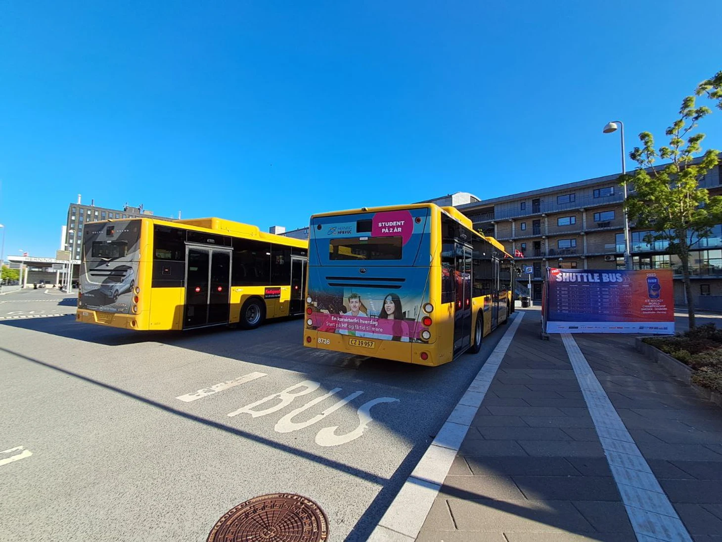 Выйдя из здания железнодорожного вокзала, сразу же видишь стоянку для автобусов и до «Jyske Bank Boxen» ездят специальные автобусы для болельщиков. Добираться примерно десять минут и за проезд платить не нужно.