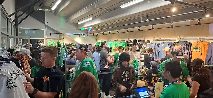 Начну с «вешалки», то есть парковки. Конечно, в абботсфордовских далях свободного места, как в степи Саскачевана, но это, наверное, в будни. Такой праздник, как финал Кубка, не смог вместить всех желающих на имеющиеся парковки, а добираться в эту глушь общественным транспортом мало кому придет в голову. В итоге, приехав за полчаса до начала, мы не нашли ни единого свободного места. Пришлось парковаться в каких-то полях и идти к стадиону огородами. Поэтому, как громко и торжественно пели гимны, мы пропустили, а их точно пели, я знаю. Зато, когда вошли внутрь, в магазине мерча уже не было толпы, у прилавков с пивом и бургерами – тоже.