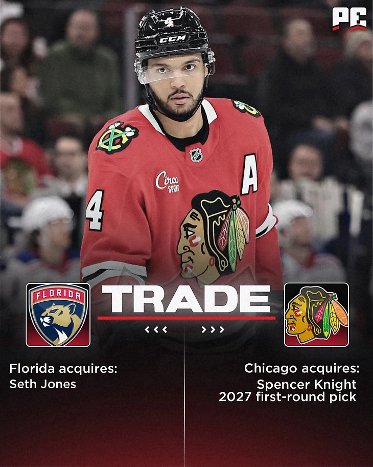 Поскольку «Флорида» серьёзно нуждалась в защитнике топ-4, а обменивать кого-то из ключевых и опытных игроков перед плей-офф было бы опрометчивым ходом, выбор пал на молодого голкипера, ставшего частью обмена Сэта Джонса из «Чикаго» («Блэкхокс» также получили 1 раунд 2026 года). Тут совпало всё: и «Ястребам» нужен молодой и перспективный вратарь, звание которого всё ещё носит Найт, и от Джонса команда хотела избавиться, да и сам Джонс, конечно, был рад сменить команду со дна таблицы на одного из главных контендеров. Стороны быстро договорились. Про Джона ещё поговорим отдельно.
