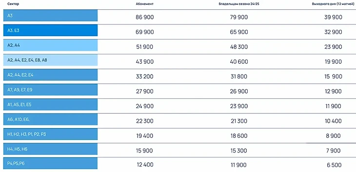 Самым первым о продаже абонементов объявил уфимский «Салават Юлаев». Самый дешевый проход на все игры регулярного чемпионата 25/26 стоит 13 800 рублей (в прошлом сезоне было 9 150), а за самый дорогой абонемент в центральных нижних секторах придется отдать 73 тысячи (в прошлом — 48 670).