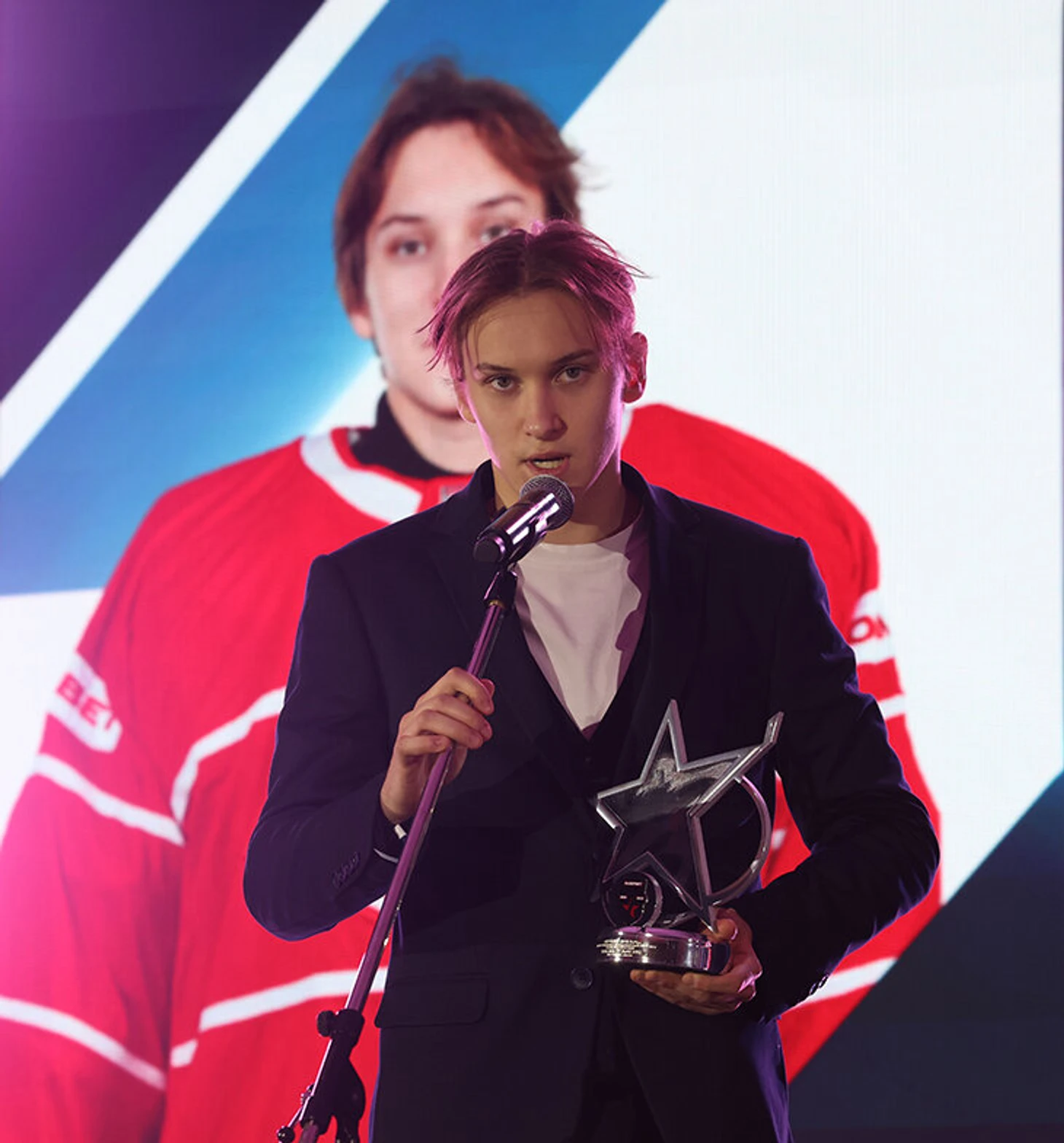 Рябкин мощно выстрелил в сезоне-2023/24. В регулярке МХЛ он выбил 58 (24+34) очков в 44 матчах – и это в 16 лет! Лига признала Ивана лучшим новичком, но впечатляло даже не это. Он дебютировал в лиге так здорово, что влетел в тройку лучших снайперов до 17 лет в истории МХЛ. Больше Рябкина в таком возрасте забрасывали только Никита Кучеров и Матвей Мичков.