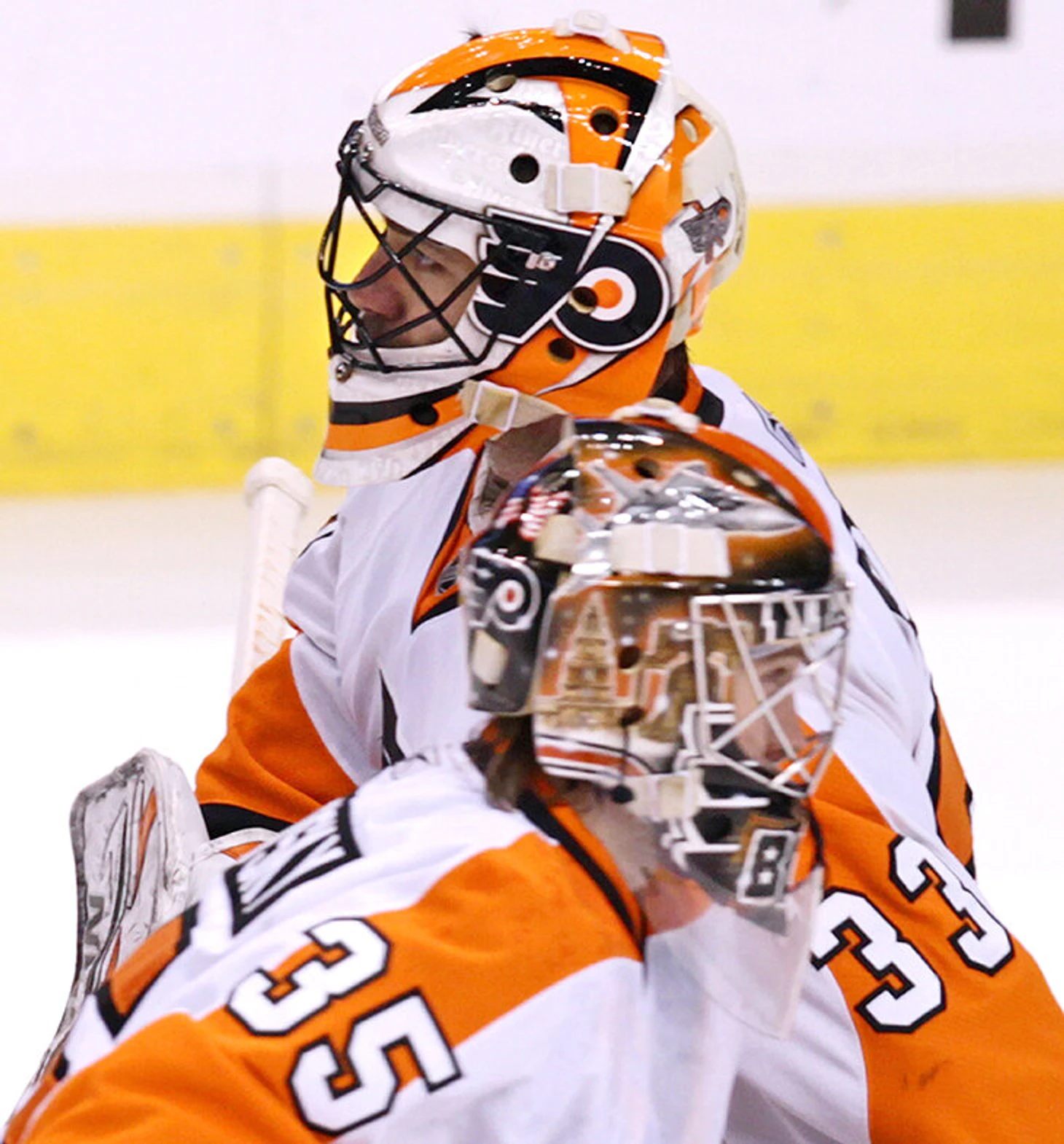 Другими вариантами для Бобровского были «Лос-Анджелес» с двумя Джонатанами – Куиком и Бернье – и «Айлендерс» с Риком ДиПьетро. И там, и там, как Сергей решил, соперничать за место в составе было тяжело. Пообщавшись с Теофаносом, Сергей подписал контракт с «Флайерс» – финалистом Кубка Стэнли-2010. Партнеры по «Кузне» не верили в Бобровского и прочили ему возвращение в Россию еще до Нового года. В том числе и поэтому Боб не думал отступать, несмотря на конкуренцию с Майклом Лейтоном и Брайаном Буше. Ни тот, ни другой не были звездными вратарями, но они только что дошли с командой до финала, и это давало им определенное преимущество.