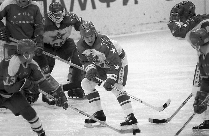 На другой половине площадки – ЦСКА Виктора Тихонова. Многократный чемпион СССР, победитель Кубка европейских чемпионов, двигатель и кузов «Красной машины», которая выигрывала чемпионаты мира один за другим и взяла золото Олимпиады в Сараево. Их звезды Вячеслав Фетисов и Сергей Макаров находились в самом расцвете сил, их состав ежегодно пополнялся лучшими игроками страны, где хоккей – спорт номер один.
