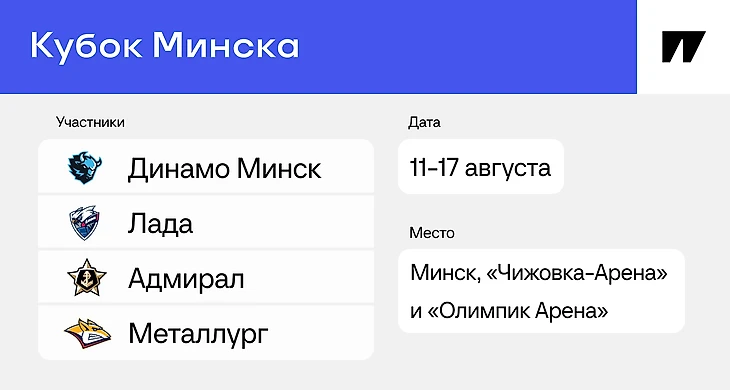 В прошлом году традиционный Кубок Блинова стал пророческим: первые два места в Омске заняли финалисты сезона-2024/25 «Локомотив» и «Трактор». Теперь состав участников частично поменялся, но остальное будет прежним. Матчи пройдут с 20 по 25 августа. Полного расписания еще нет, но как и обычно кубок разыграют по круговой системе.