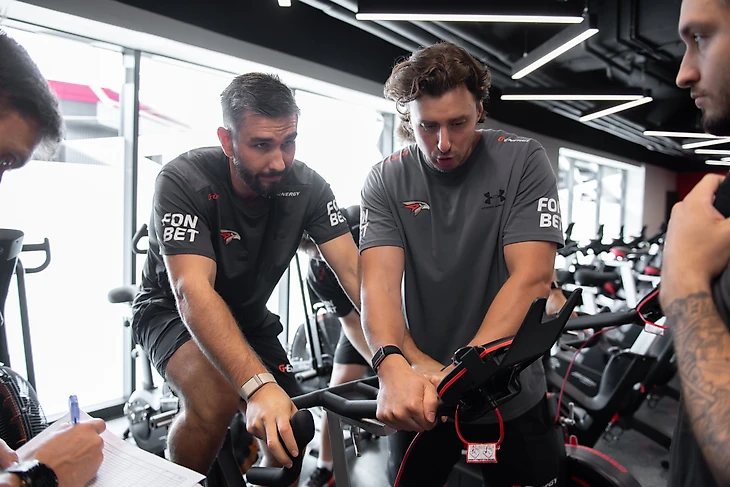 – Да, технологии не обходят стороной и наше дело. С каждым годом появляется большое количество разных датчиков, и при правильном понимании их использования они могут облегчить и улучшить работу тренера по ОФП. Те же силовые платформы, жилеты «катапульты» (в сезоне-2026/27 в «Авангарде» появится аналитический отдел, который будет заниматься считкой информации с датчиков внутри этих жилетов в целях оптимизации тренировочного процесса), динамометры и датчики скорости, которые цепляются на штангу и позволяют мне подбирать нужную интенсивность в упражнениях. Я не фанат внедрять в подготовку все подряд, потому что иногда это может помешать тренировочному процессу и даже усложнить его. Но сейчас есть девайсы, которые определенно облегчают мою работу: те же часы Whoop или Garmin, которые позволяют отслеживать восстановление, сердечный ритм, состояние нервной системы и прочие нюансы.