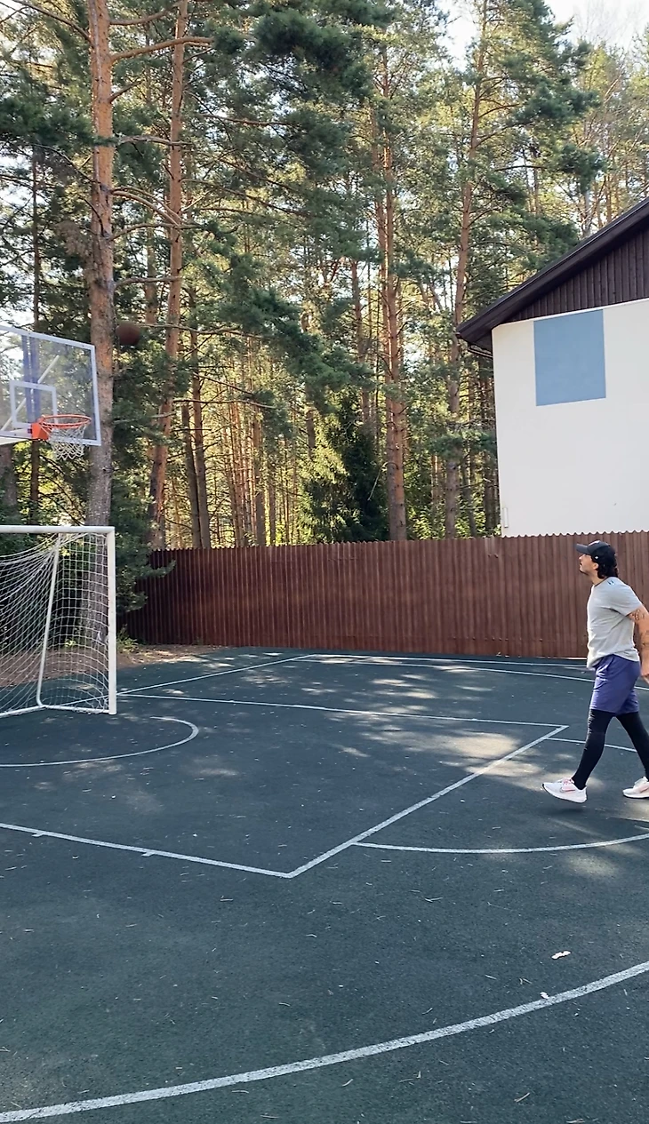 Нападающий Никита Тертышный проверил свои навыки с баскетбольным мячом.
