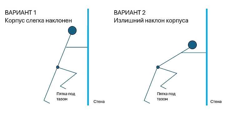 Попробуйте сделать эксперимент, подойдите к стенке и упритесь в нее как на картинке ниже и попробуйте в двух вариантах как можно быстрее поднести колено вперед, чтобы пятка была под тазом и сравните в какой позиции получается легче и быстрее. Если у вас нет анатомических особенностей, то во втором варианте с заваленными плечами вперед сделать это будет гораздо тяжелей.