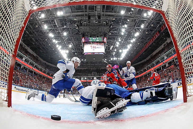 4. Игроки «Динамо» суетились и теряли контроль над соперником. Например, в середине третьего периода упустили Спронга. Владея шайбой в собственной зоне, они будто бы не заметили его на пятаке и отдали неаккуратную передачу. Спронг легко перехватил ее, но выручил Моторыгин.