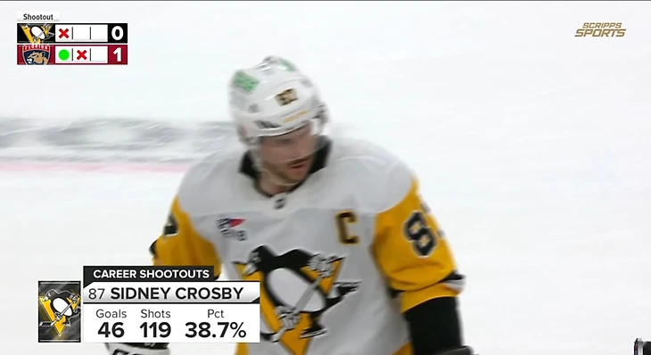 Как видим, зрителю во время телевизионной трансляции наглядно представляются такие показатели хоккеиста как количество буллитных попыток, число среди них реализованных, процент реализации игрока, а также данные по победным буллитам. Охватывает эта информация как всю карьеру бросающего, так и текущий сезон.