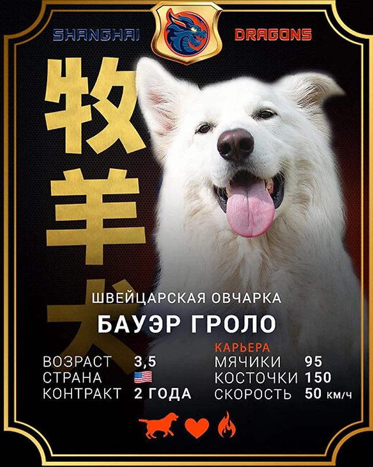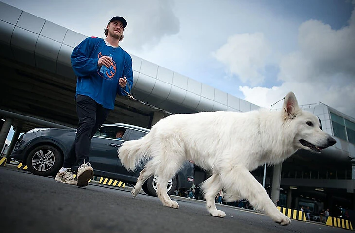Первым в Санкт-Петербург вместе с собакой приехал защитник Джереми Гроло. Канадца встретили в аэропорту, а среди его вещей была переноска. Там находилась швейцарская овчарка по кличке Бауэр. Видео для болельщиков «Шанхая» Гроло записал как раз с псом.