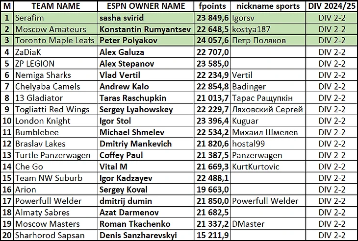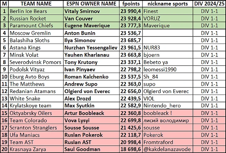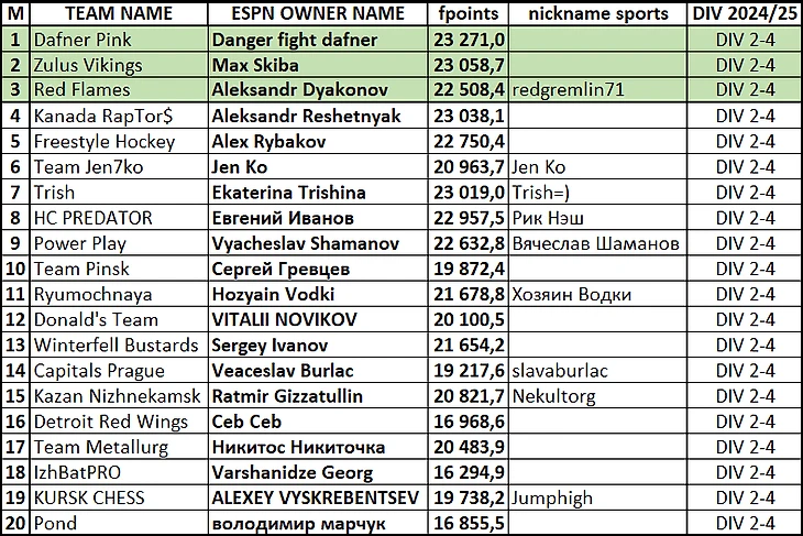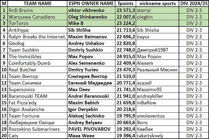 Итоги сезона 2024/25 (клик по тексту = переход в гуглодок)