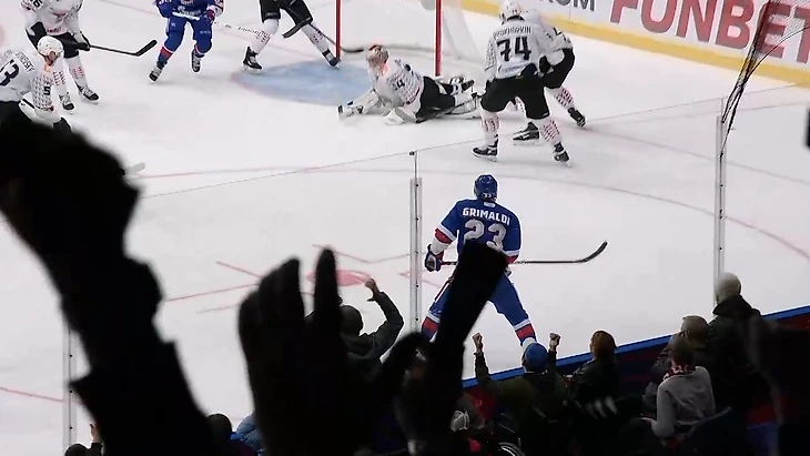 Уточню, что это было будто бы заготовленное действие, потому что спустя 8 секунд все повторилось: Марсель с фланга набросил на ворота Заврагина, около которого, на «пятаке» умно располагался Эндрю Потуральски, ждавший именно этого броска и переправивший шайбу четко в ворота. Довольно любопытная ситуация: игроки СКА не сумели быстро проанализировать момент, чтобы перекрыть и Ибрагимова, и Потуральски. Как итог: Эндрю без труда переправил снаряд прямо за спину вратарю питерцев.