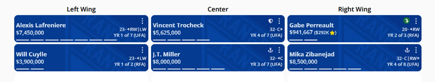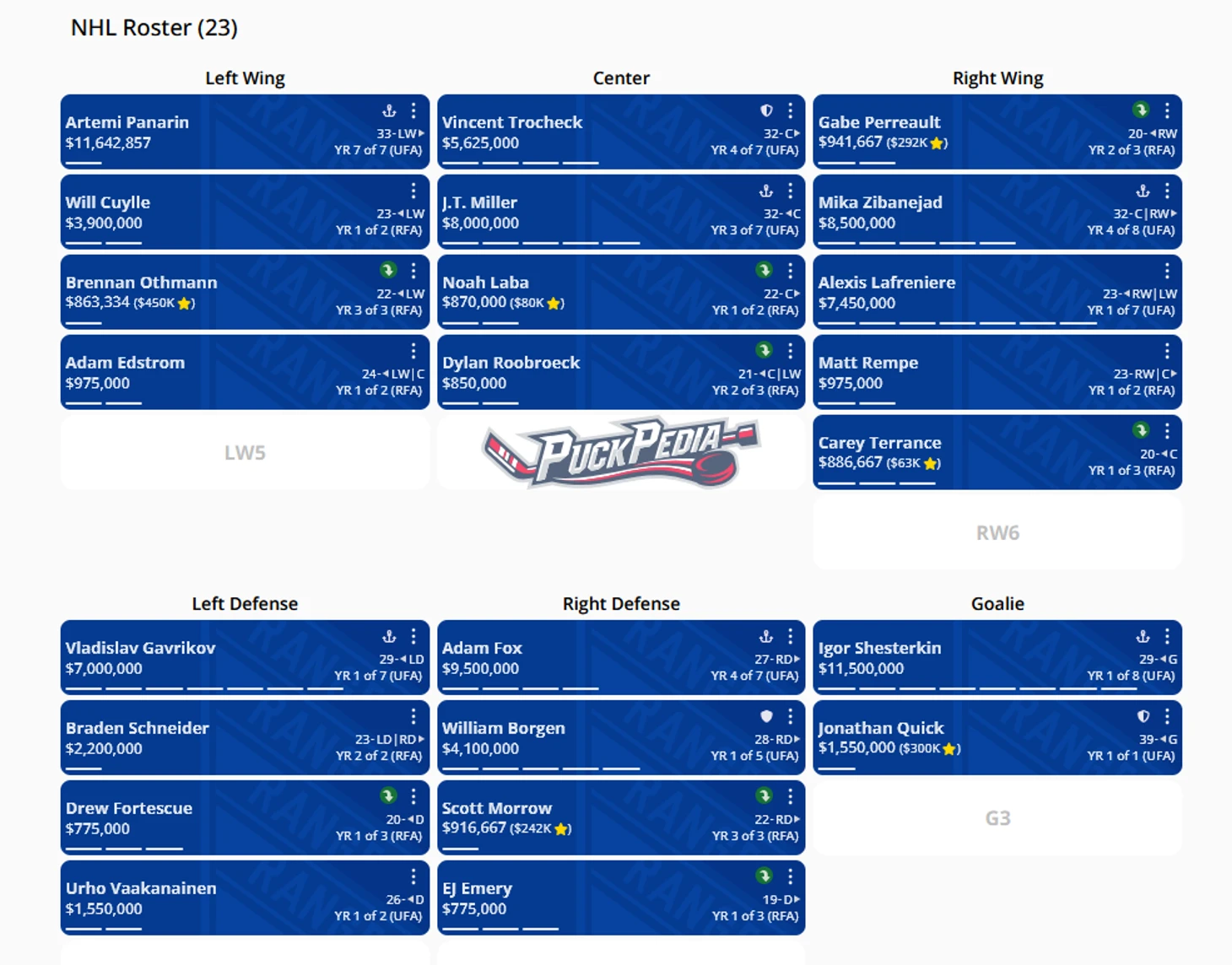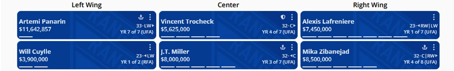 Осталось совсем немного до начала сезона. Я считаю именно Рейнджерс, командой вызывающей наибольшее количество вопросов, особенно в сравнении с соперниками по дивизиону. Интересно посмотреть на потенциал клуба в предстоящем и следующем сезоне исходя из ресурсов и места под потолком. Все картинки в посте сделаны при помощи инструментов сайта PuckPedia.