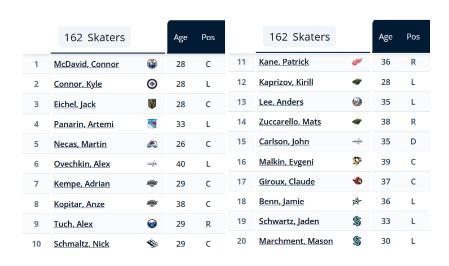 По примеру прошедшего лета, возможно из звезд UFA останется только один-два игрока. А может не останется никого. Вот картинка с предстоящими лучшими неограниченно свободными агентами. Но кто будет действительно свободен, кто перейдет именно в Рейнджерс и как путем трейда или летом, это большой фактор X. Да и во сколько это обойдется и будет ли иметь смысл для клуба, даже если один из игроков выразит такое желание. Их прогнозируемый AAV не внушил мне оптимизма. Конечно, МакДи и совсем призрачный Айкел это исключения, снижающие фактор AAV при принятии решения