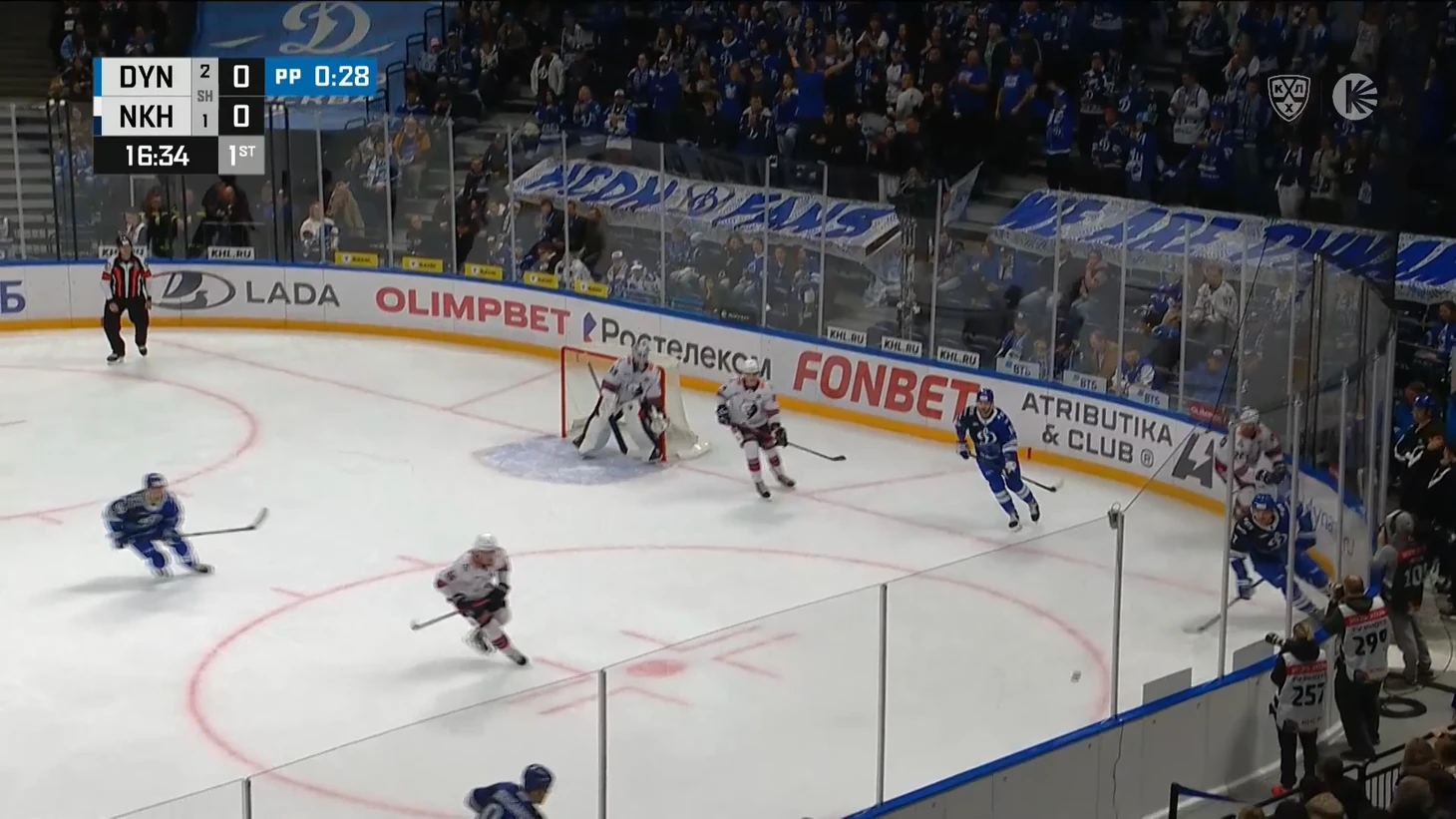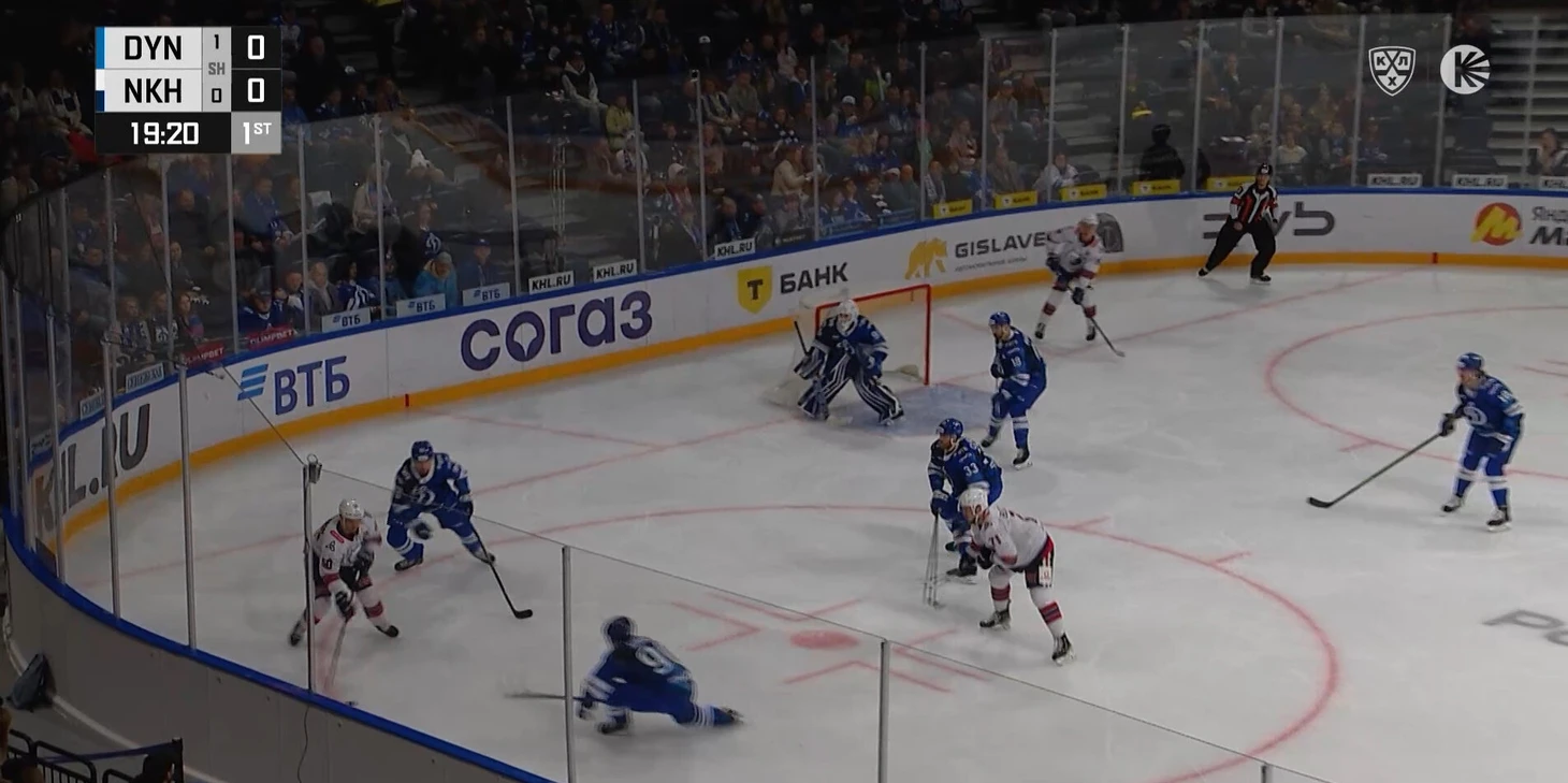 Вратарей весь первый период нагружали одинаково – команды нанесли по 11 бросков. Но голкиперу «Динамо» сэйвы давались заметно тяжелее. С одним из этих бросков Моторыгин все-таки не справился и на девятой минуте пропустил от Евгения Митякина. Кроме света, других помех в том эпизоде для голкипера не существовало.