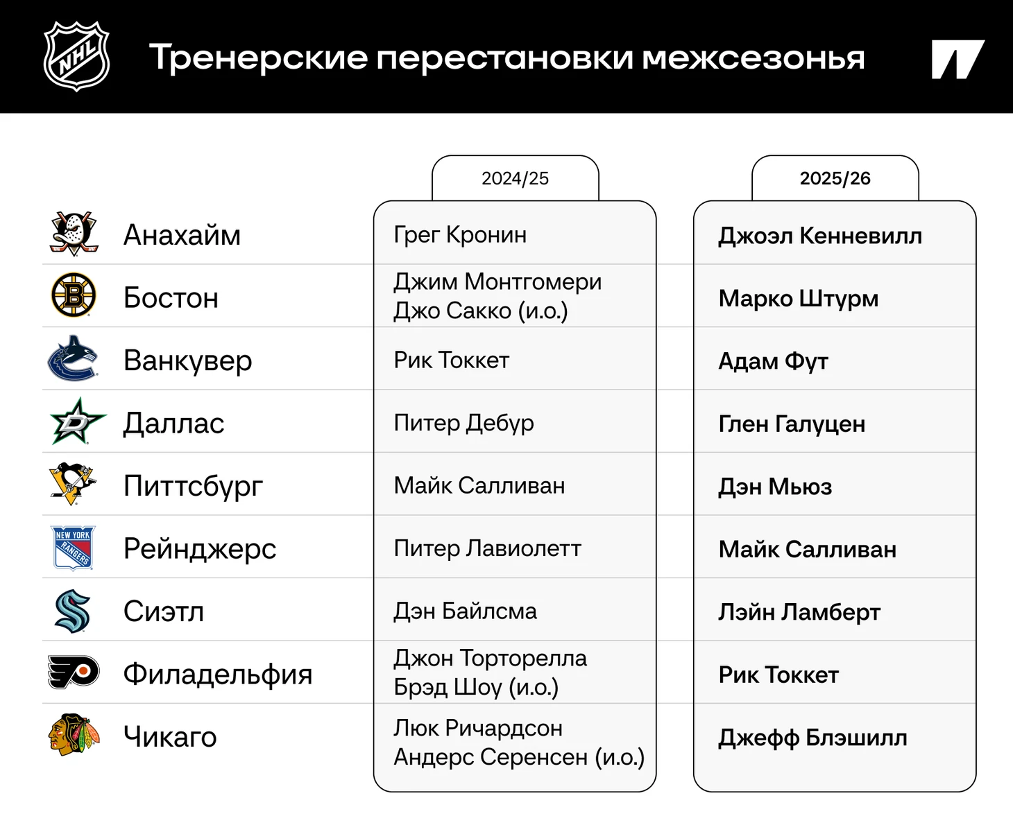 Всего в межсезонье девять клубов поменяли главных тренеров. Почти во всех перестановках нет ничего неожиданного: предыдущие спецы либо не оправдали ожиданий, либо давно исчерпали себя. А в «Бостоне» и «Филадельфии» с постов ушли временщики, чьи назначения изначально не были рассчитаны на долгосрочный период.