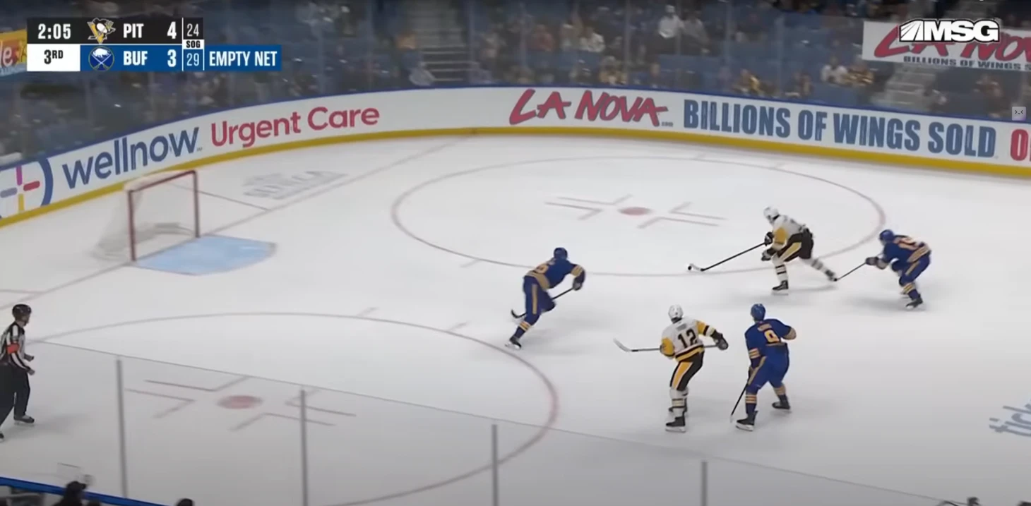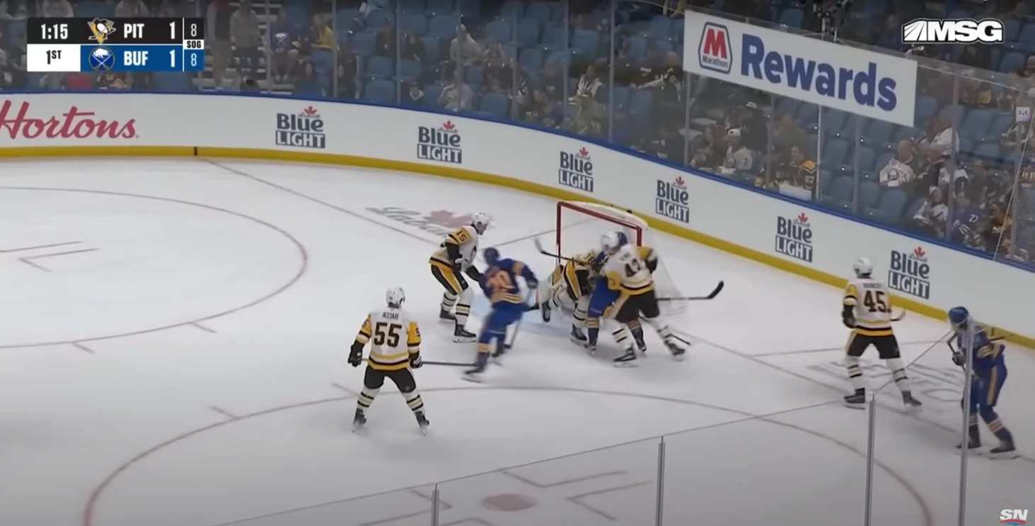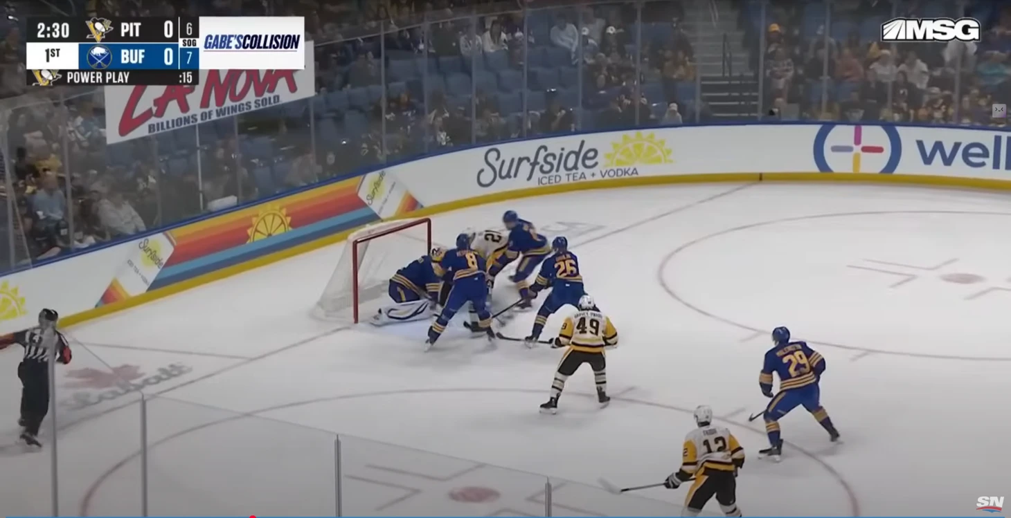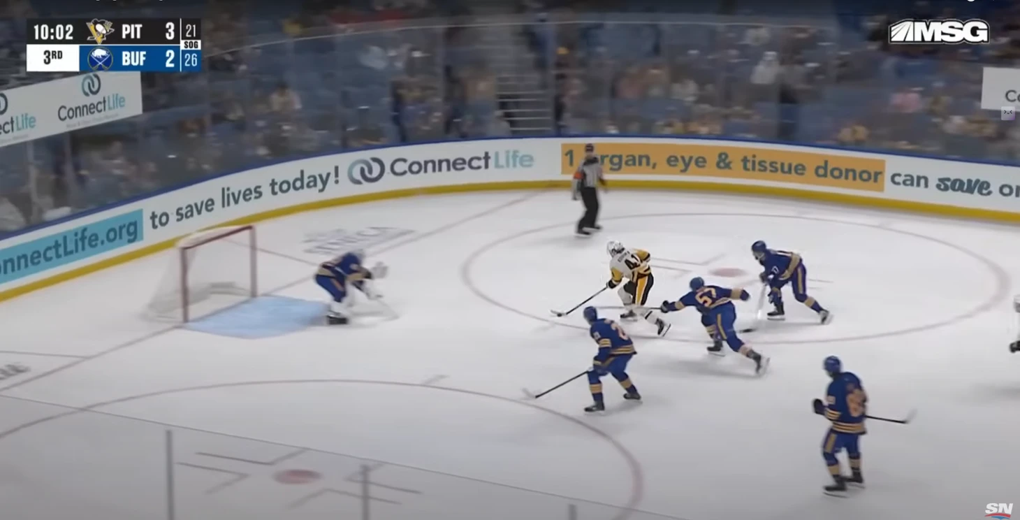 Допустили много бросков. В этом матче вообще хоккей был более открытым, чем в играх с «Коламбусом» и «Детройтом». И сами «Пингвины» побеспокоили вратарей «Баффало» 26 раз, и по своим воротам дали бросить аж 31. Не сказать, что прямо очень много, но на фоне 20, 21 и 22 в предыдущих трех матчах выделяется.