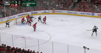 Под занавес второго периода зажегся Кирилл Капризов. 97-й номер «дикарей» выдал филигранную передачу на Райана Хартмана. Бросок у того получился не самым чистым, но удача улыбнулась — шайба от клюшки защитника «Чикаго» Уайетта Кайзера срикошетила в ворота.
