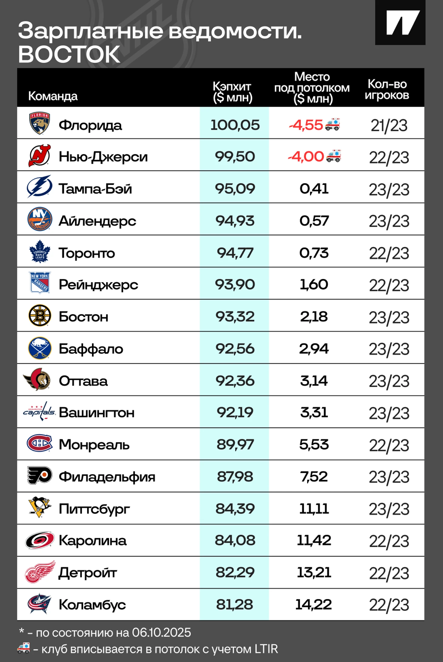 Старт сезона в НХЛ совсем близко. В последних контрольных матчах тренеры и менеджеры команд определились с итоговыми составами на первую игру регулярки. А значит, настала пора посмотреть на платежные ведомости клубов и предположить, кто из них будет наиболее активен в обменах и подписаниях в следующие несколько месяцев.