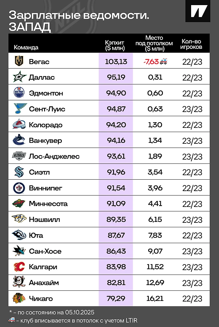 Старт сезона в НХЛ совсем близко. В последних контрольных матчах тренеры и менеджеры команд определились с итоговыми составами на первую игру регулярки. А значит, настала пора посмотреть на платежные ведомости клубов и предположить, кто из них будет наиболее активен в обменах и подписаниях в следующие несколько месяцев.