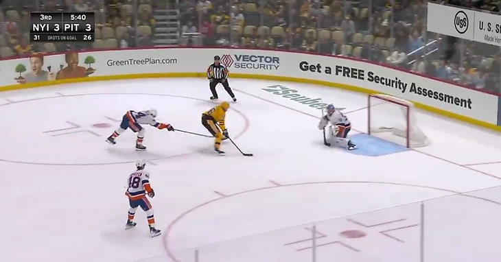 Также «Островитяне» были сильнее на точке — 39 вбрасываний против 28. Два основных центра с отрицательным показателем: Кросби — с терпимыми 46.7%, Малкин — с уже не сильно терпимыми 36.4.